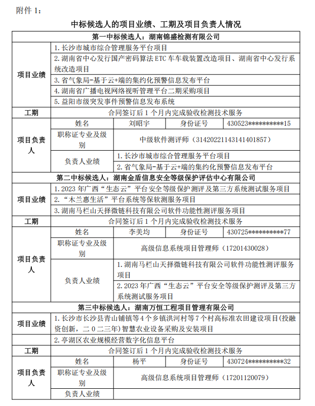 第一中标候选人:湖南锦盛检测有限公司(投标报价:214600.00元)